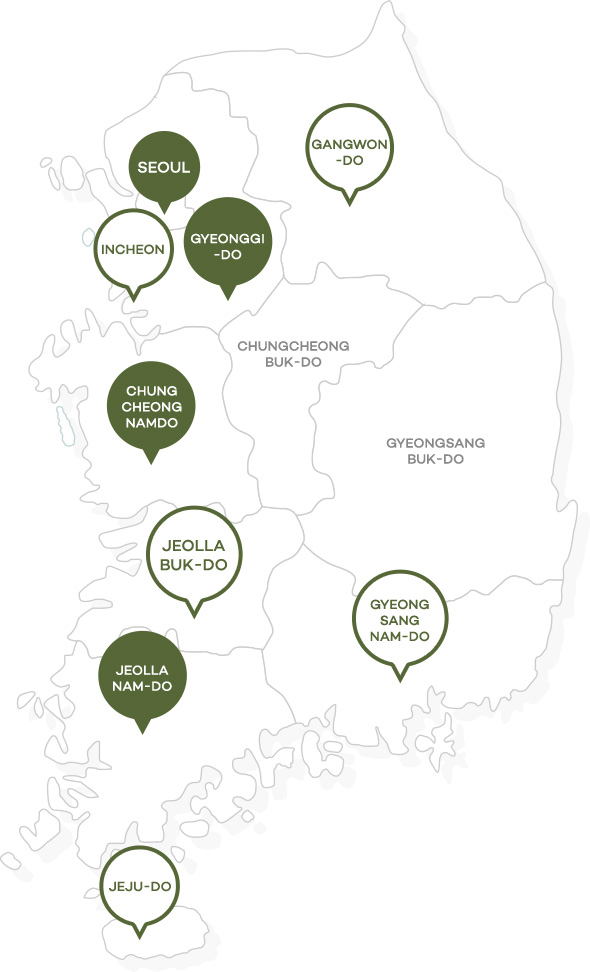盆唐店,水源仁溪店,安养店,九里店,平泽店,利川店, 一山注叶店,富川店